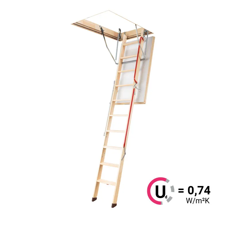 Складная чердачная лестница LWL имеет повышенные теплоизоляционные параметры и высокий класс герметичности. Утеплённая крышка люка белого цвета. Лестница оборудована специальным механизмом LXM-3 и крючком на нижней ступени марша для стержня, которые в комплексе обеспечивают лёгкость и плавность открывания и закрывания лестницы. Снабжена дополнительным поручнем для безопасного подъёма.