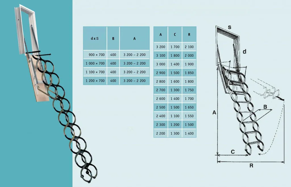 Чердачная лестница OMAN NOZYCOWE VERTICALE 70×100 см, h-300 см |