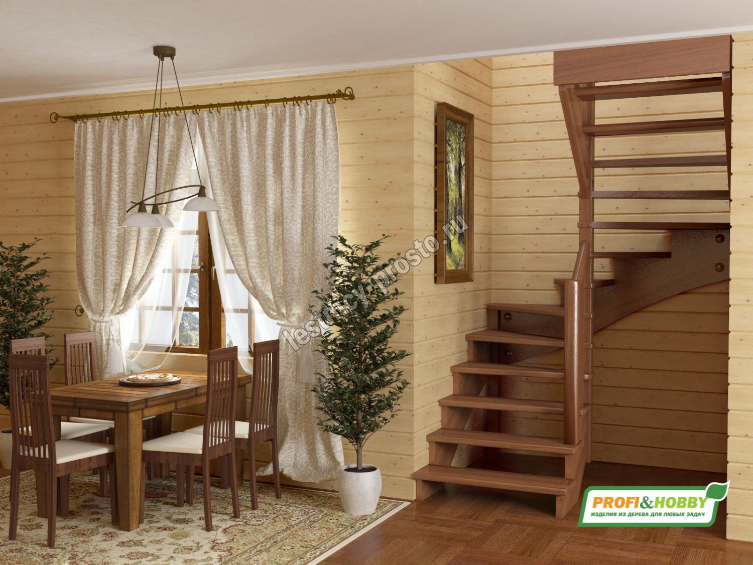 Базовый комплект включает в себя деревянные элементы лестницы и ограждения без какого-либо покрытия.