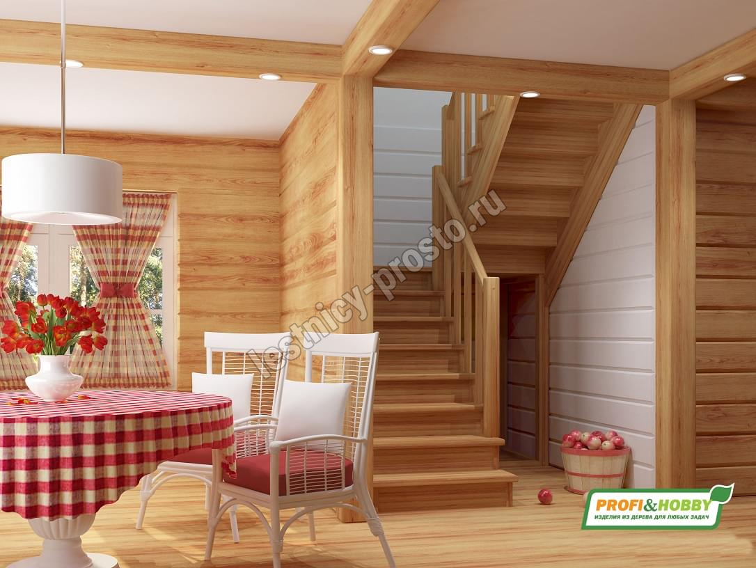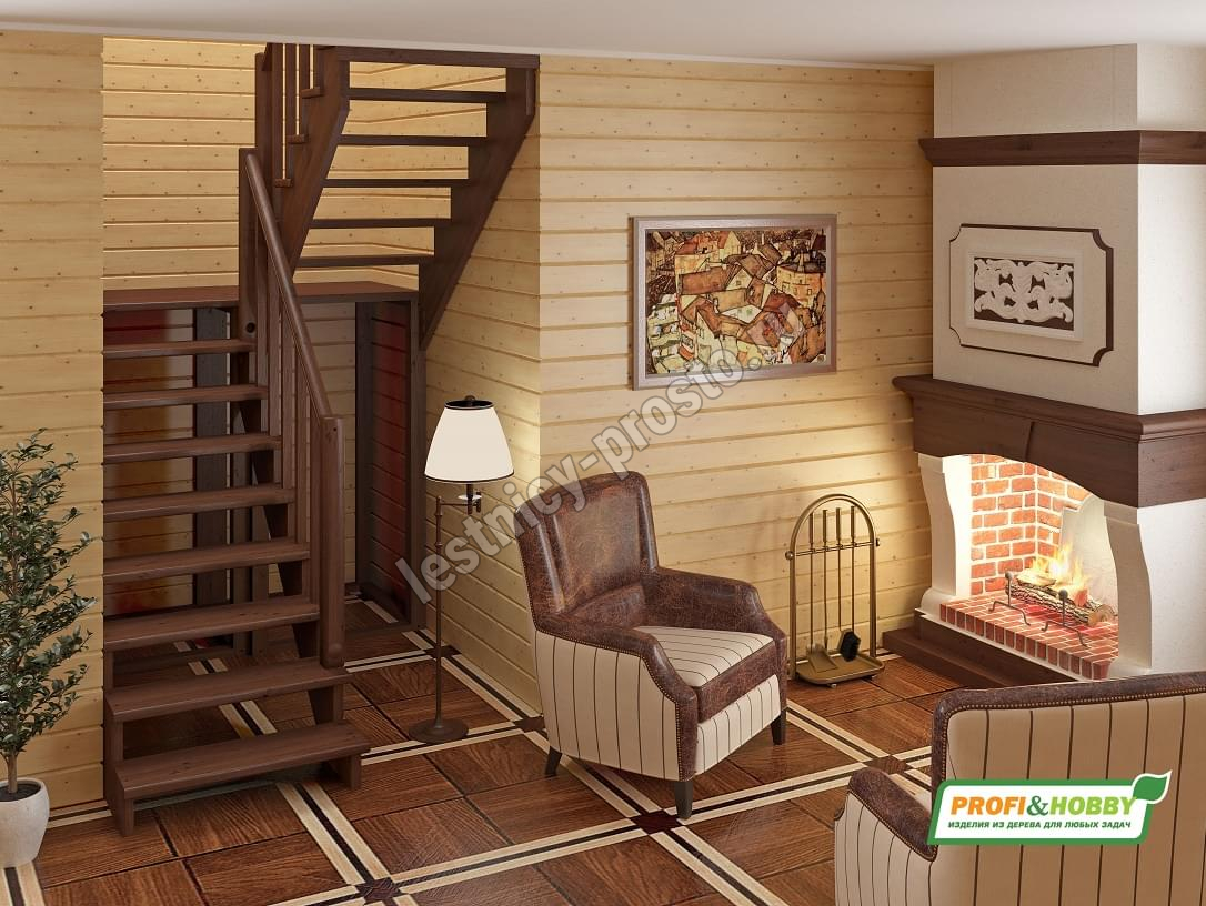Базовый комплект включает в себя деревянные элементы лестницы с подступёнками и ограждения без какого-либо покрытия. Стандартное ограждение можно заменить любым на ваш вкус (стоимость может измениться).