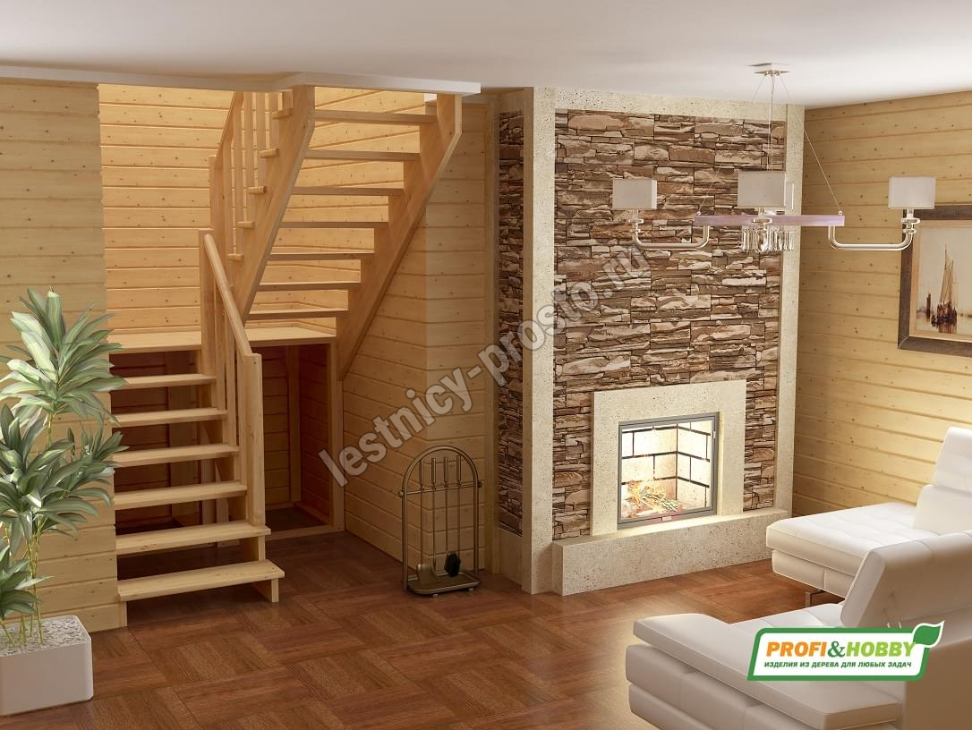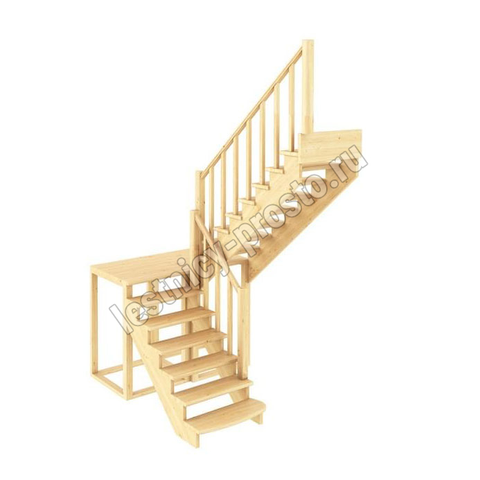 Базовый комплект включает в себя деревянные элементы лестницы и ограждения без какого-либо покрытия.
