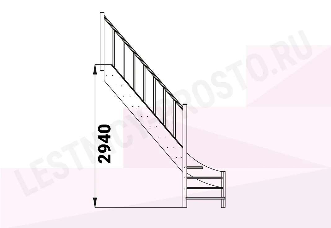 Базовый комплект включает в себя деревянные элементы лестницы с подступёнками и ограждения без какого-либо покрытия.