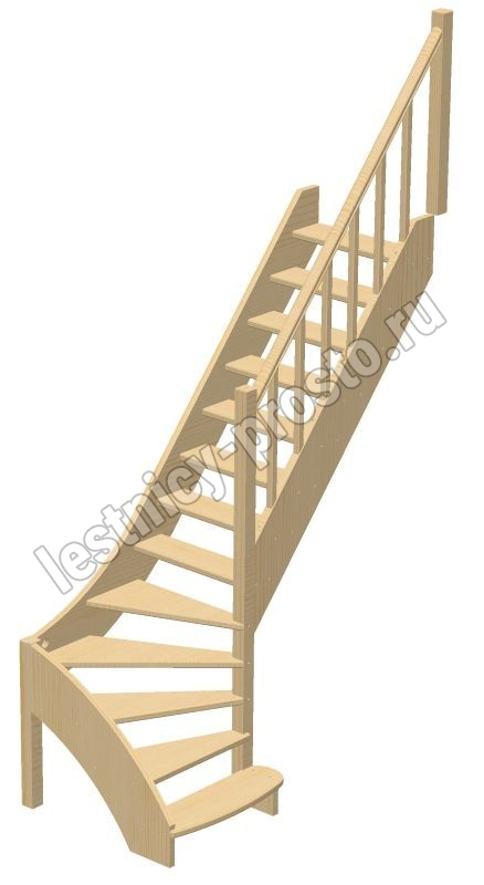 Базовый комплект включает в себя деревянные элементы лестницы и ограждения без какого-либо покрытия.