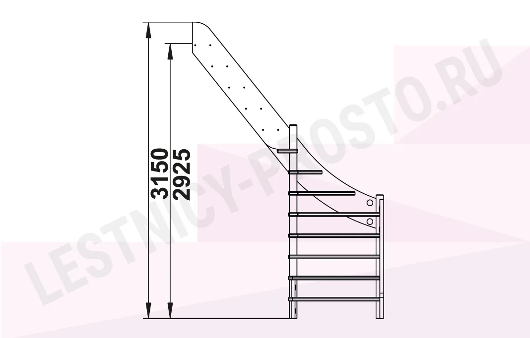 Базовый комплект включает в себя деревянные элементы лестницы без какого-либо покрытия.