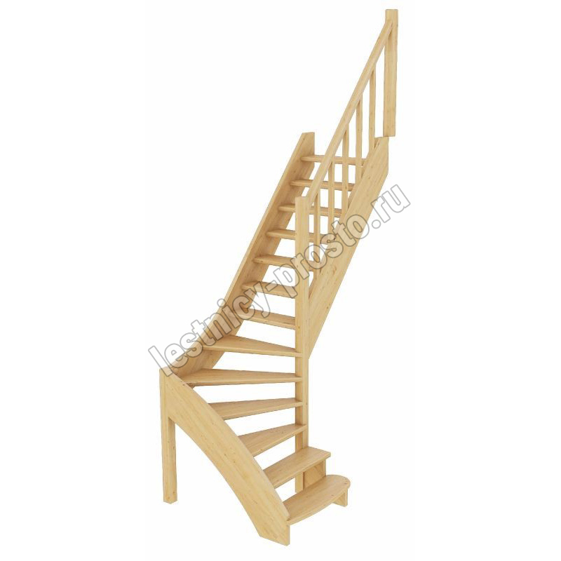 Базовый комплект включает в себя деревянные элементы лестницы и ограждения без какого-либо покрытия.