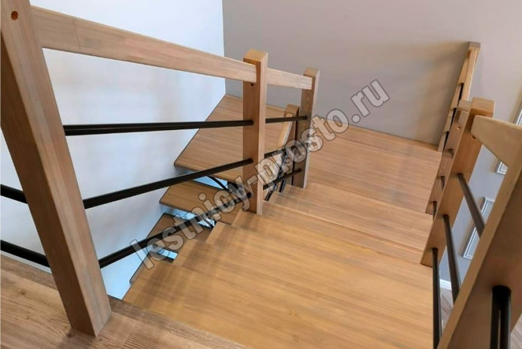 В комплекте: 3 прямых столба и профильный поручень без покрытия, комплект из 3 ригелей из стали (окрашены в цвет каркаса или хром по желанию) диаметром 12 мм. Ограждение начинается со второй ступени.