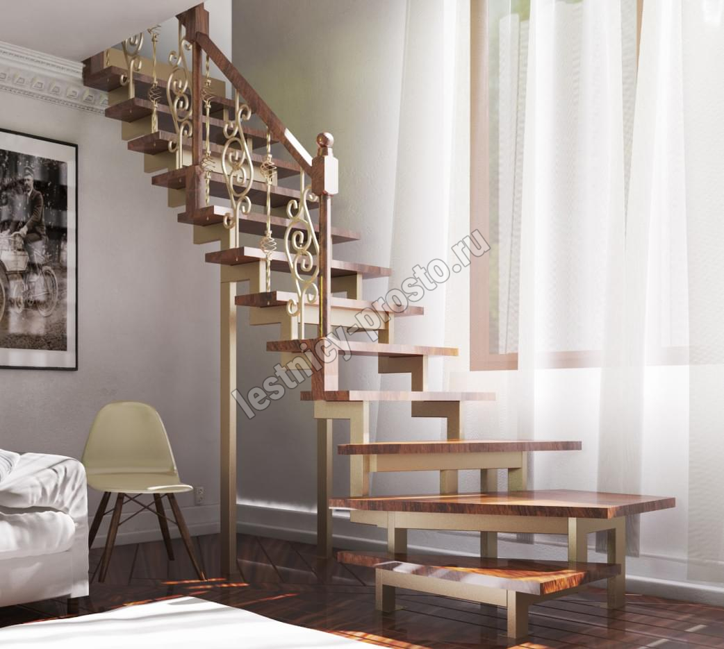 У данного варианта лестницы ступени изготовлены из сращенной лиственницы категории АВ без какого-либо покрытия.