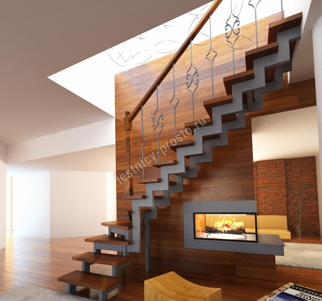 Основой лестницы Prosto Due 40×80 служит двойной металлический каркас из профильной трубы 40×80 мм (включая 2 опоры на пол под поворотом), который обеспечивает надёжную прочность конструкции и современный актуальный дизайн.