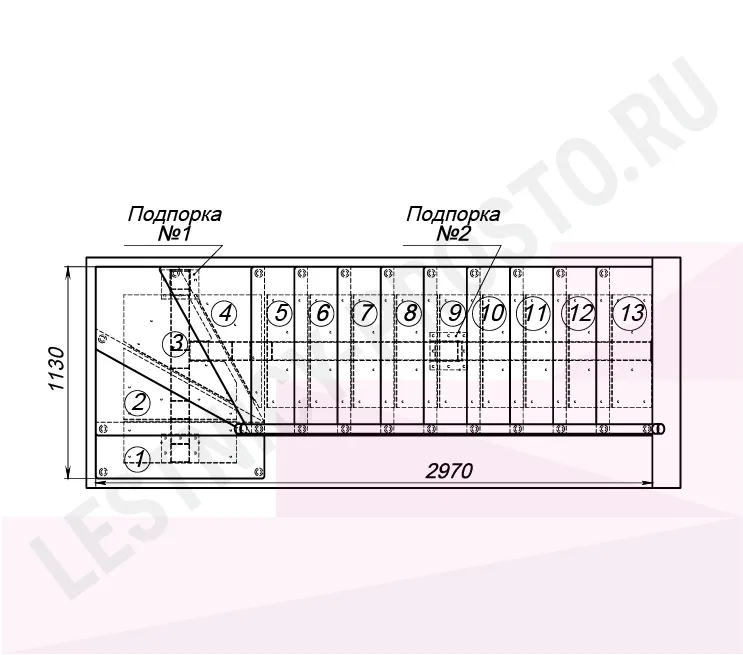 1. Верхняя ступень устанавливается вровень с уровнем верхнего этажа