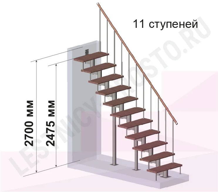 Каркас лестницы представляет собой набор модулей, которые комплектуются уже готовыми к монтажу.