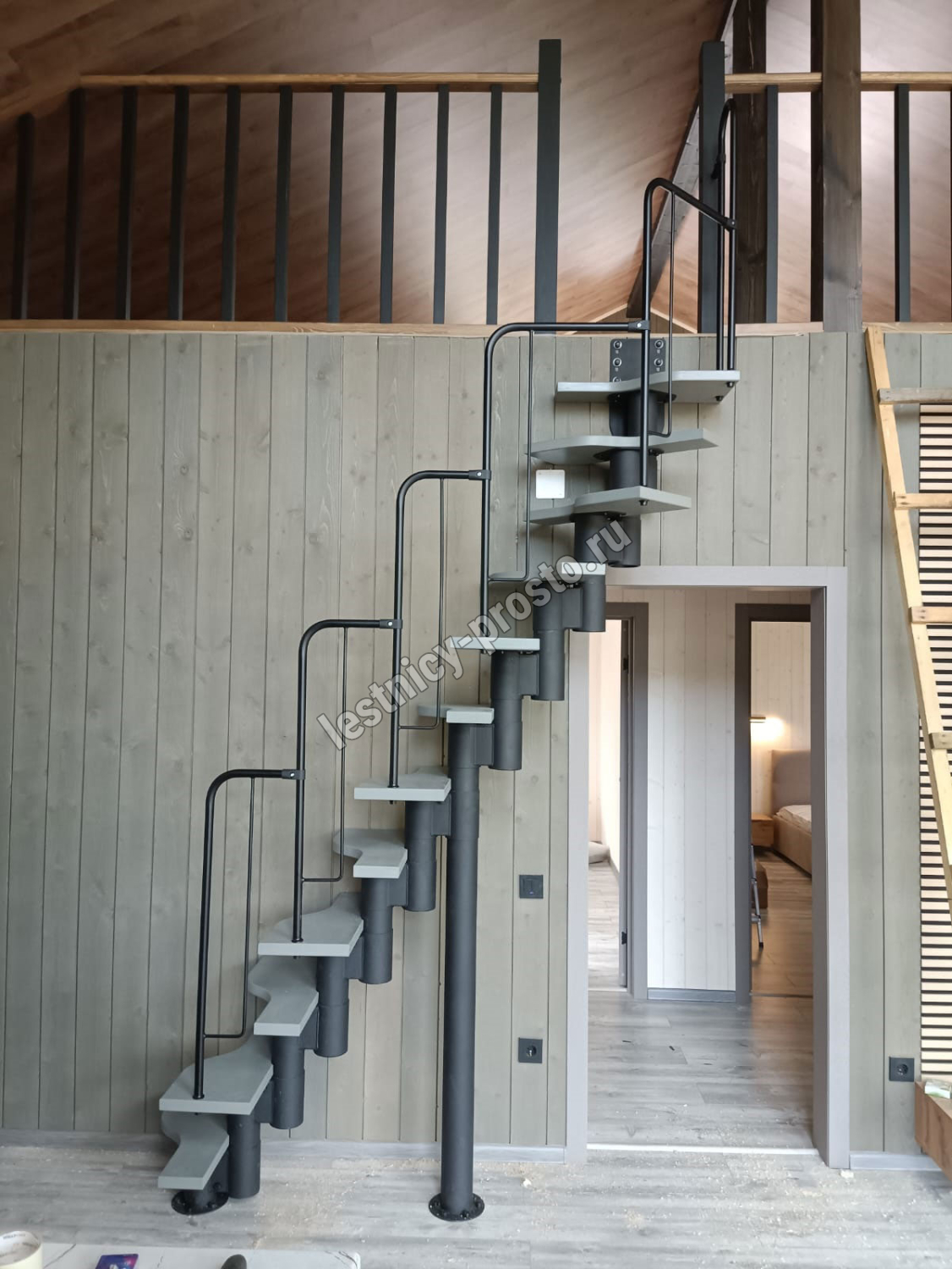 Лестница Prosto Urban Black гусиный шаг 600 мм, h198-288 см (11 ступеней), ясень