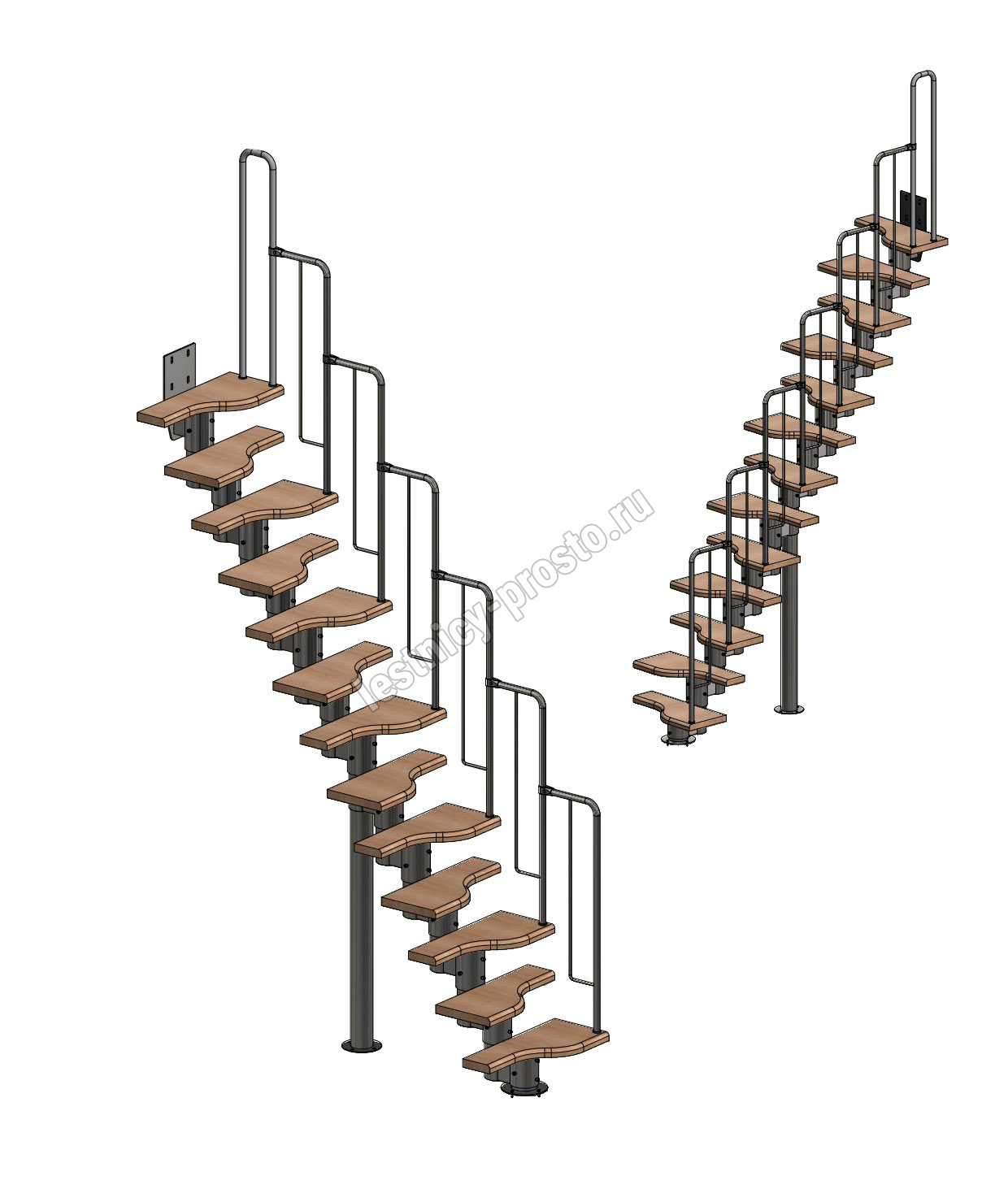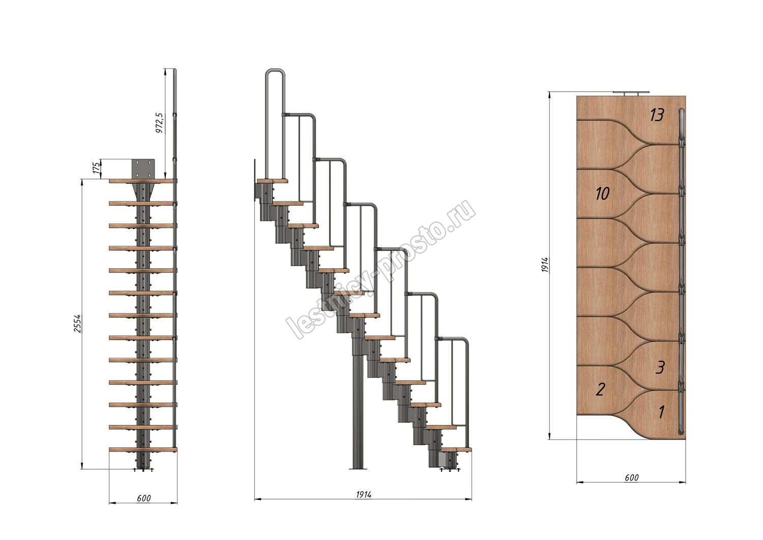 Лестница Prosto Urban Black гусиный шаг 600 мм, h234-336 см (13 ступеней), ясень