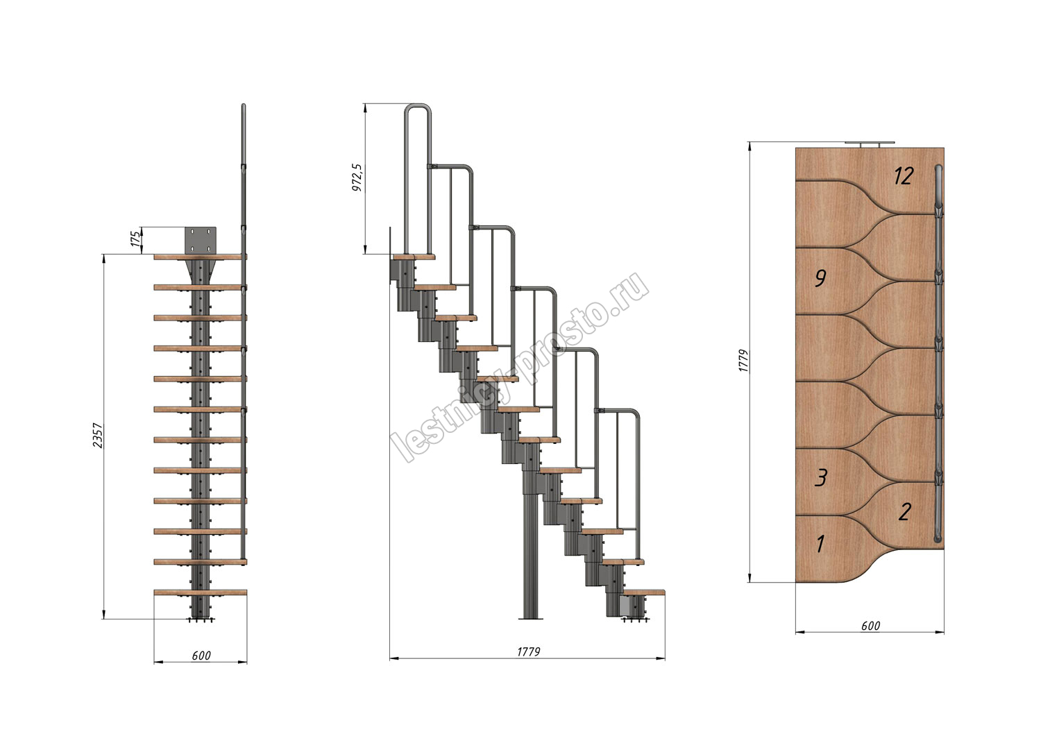 соответствует картинке, но вы не ограничены в его выборе. Лестницу можно приобрести и без ограждения, и с любым другим. Устанавливать на такую лестницу можно почти всё, начиная от классических деревянных балясин и заканчивая эксклюзивными коваными изделиями.