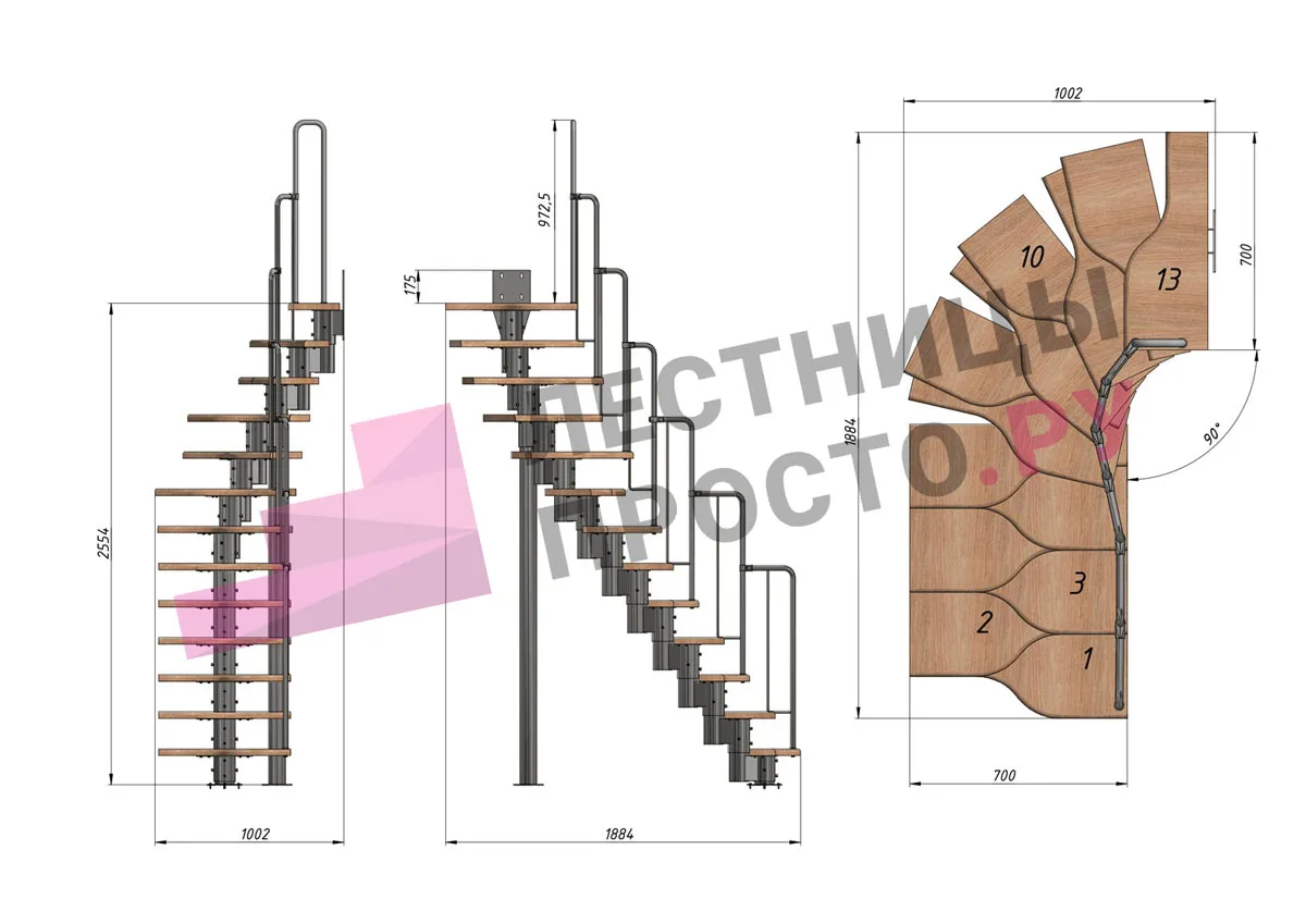 - Регулируемый по высоте в пределах 180-240 мм модуль. Большой диаметр и толщина металла деталей обеспечивают жесткость и прочность конструкции. Регулировка каждого модуля по высоте позволяет легко приспособить лестницу под ваше помещение.