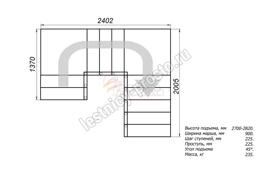 Модульная лестница Комфорт 225 2700-2820, Серый, Лиственница, Крашеная