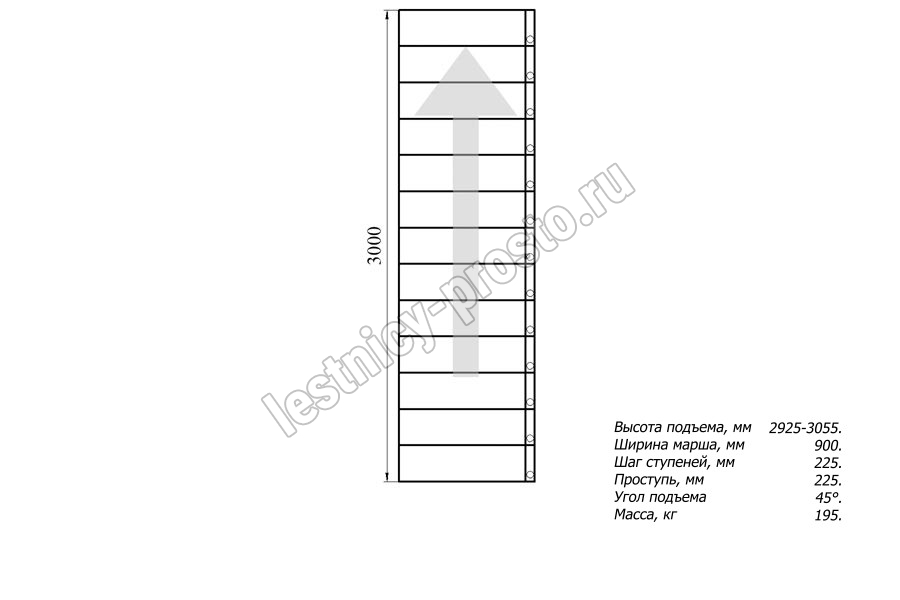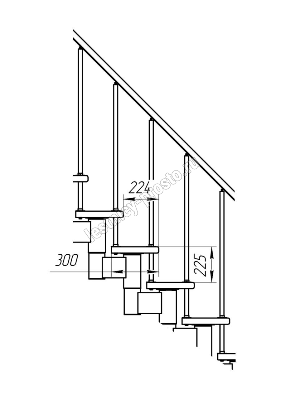 Модульная лестница Стандарт 2925-3055, Серый, Бук, Крашеная