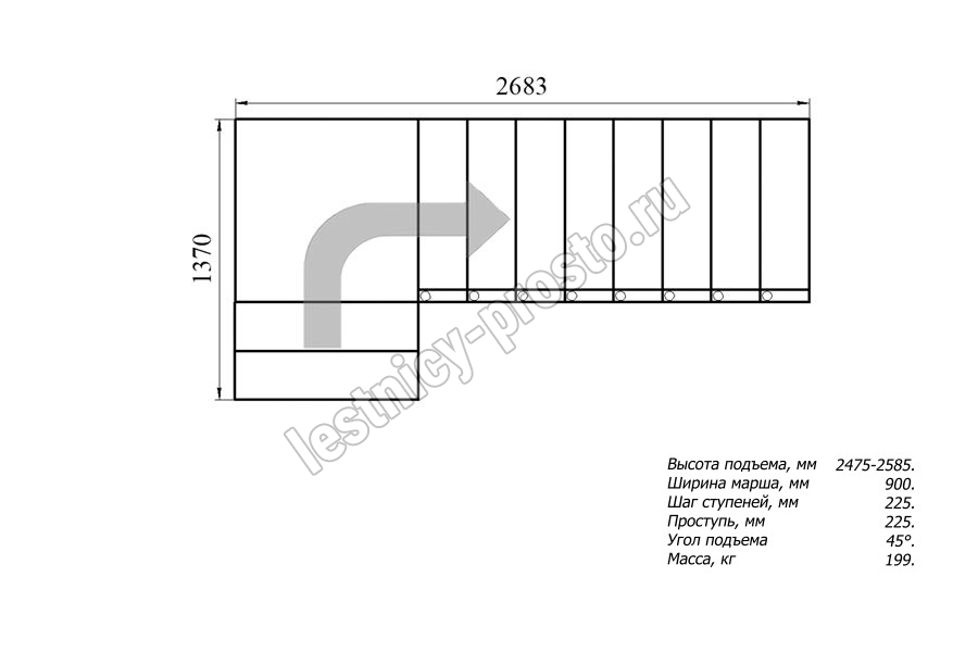 Модульная лестница Статус 225 2475-2585, Белый, Сосна, Крашеная