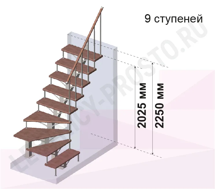Лестница PROSTO MONO Г-образная h225 см, ступени лиственница |