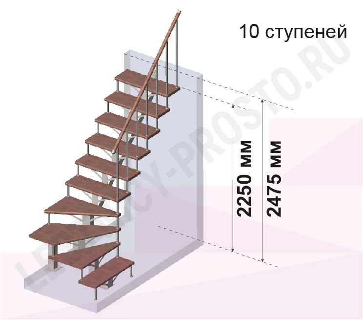Лестница PROSTO MONO Г-образная h247.5 см, ступени хвоя |