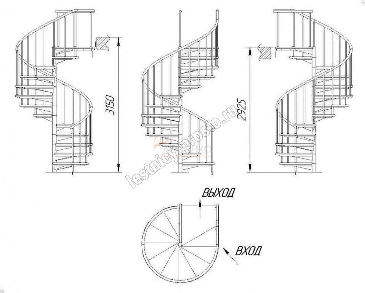 Винтовая лестница ЛЕС-1,8 высота 2925-3150, Белый, Сосна