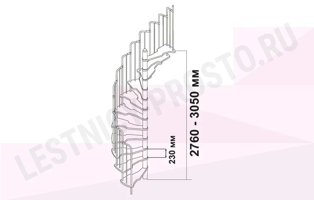 Винтовая модульная лестница Metallica 70 х 140 см, h-300 см