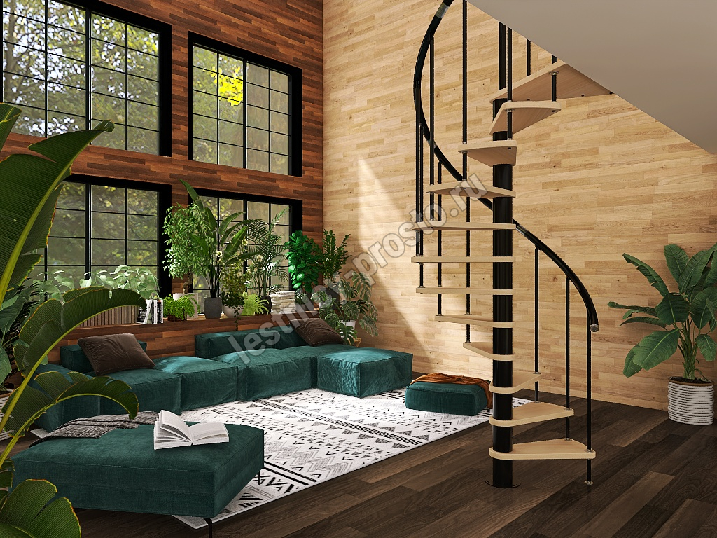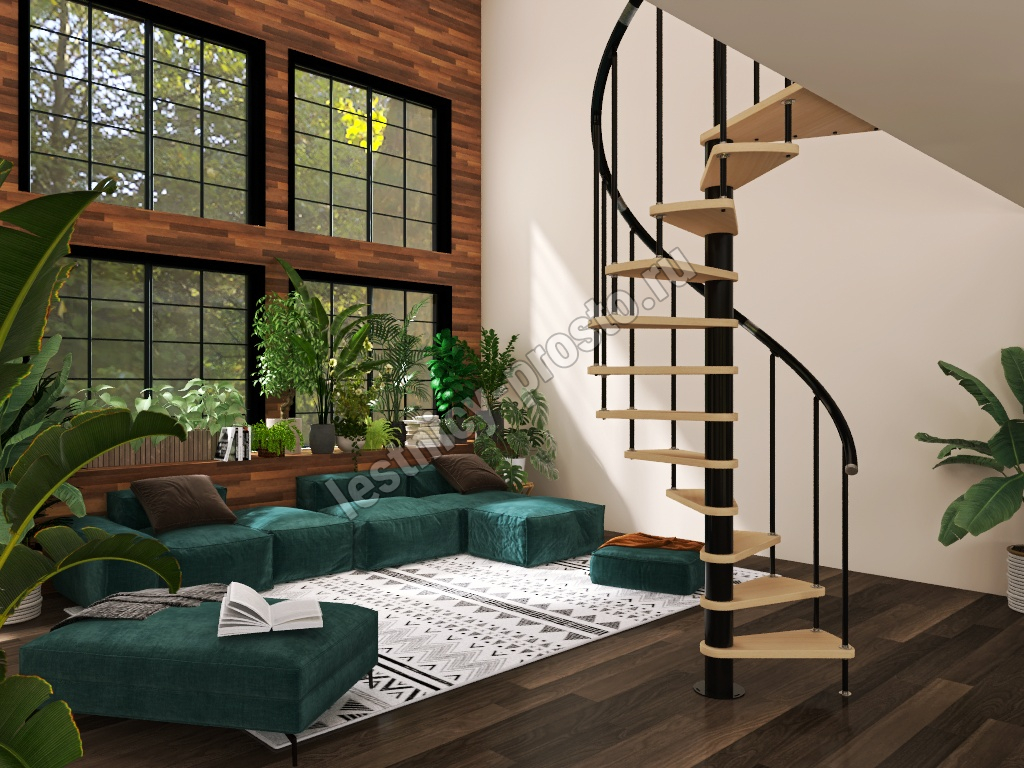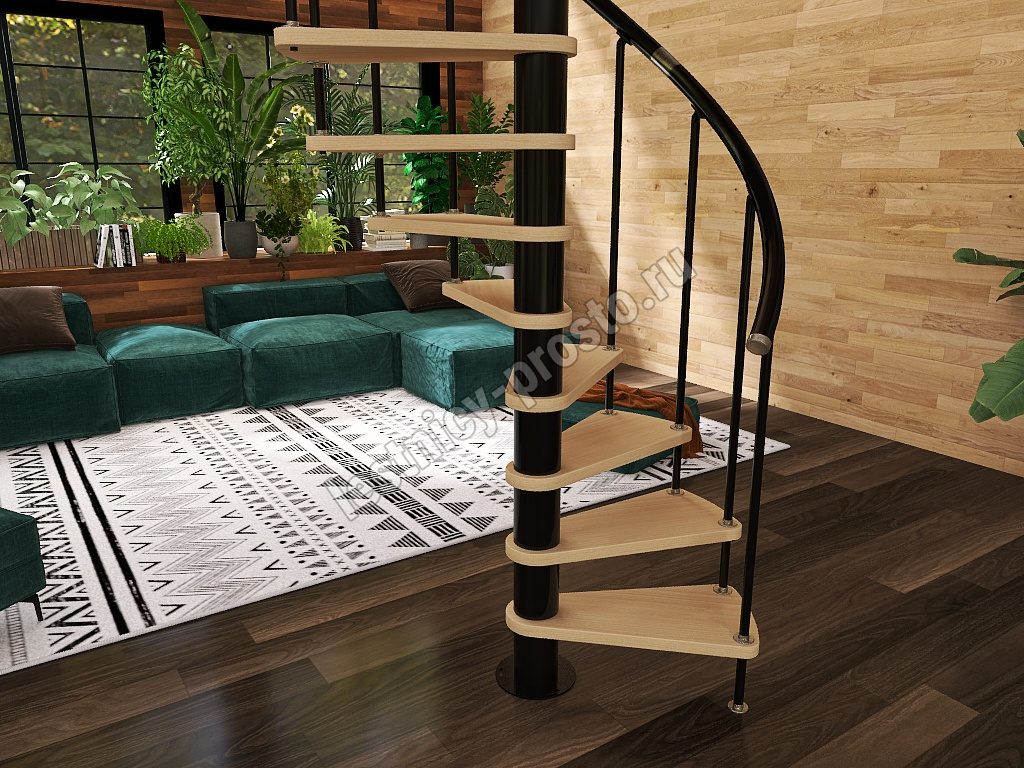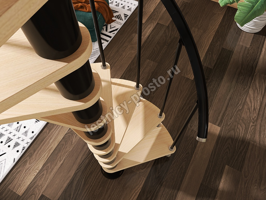 Винтовая лестница Prosto Spiral Black D140см, h303.9-348,1 см, бук