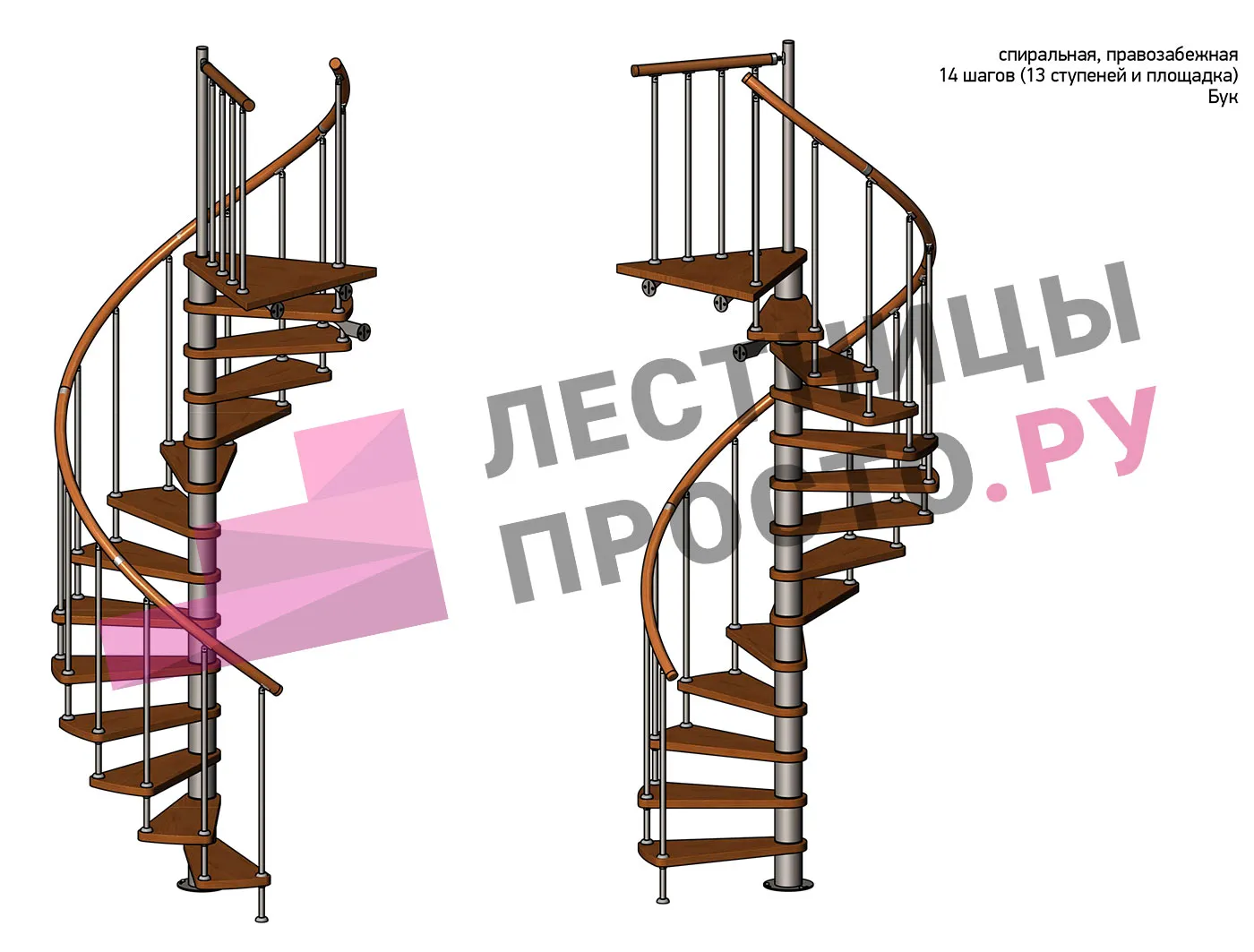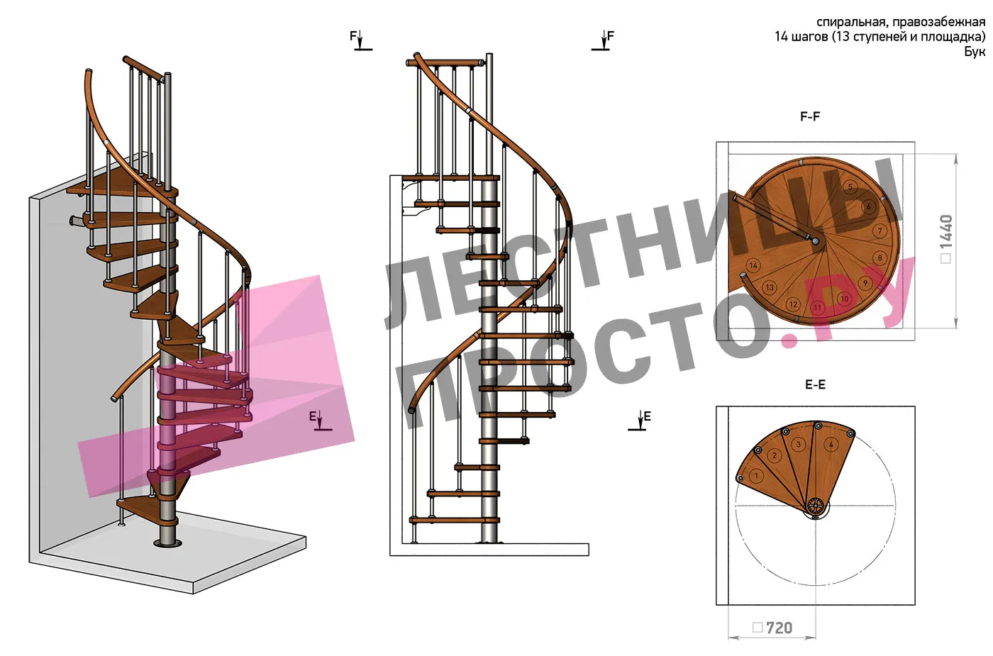 Ширина ступени между центральной колонной и поручнем ≈ 580 мм