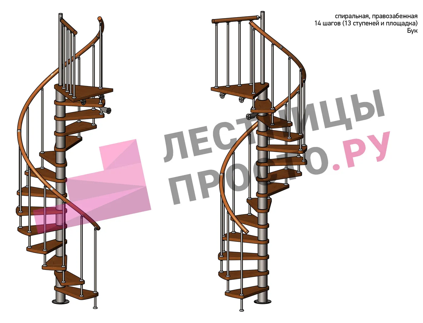 Ширина ступени между стойками и центральной колонной ≈ 48 см