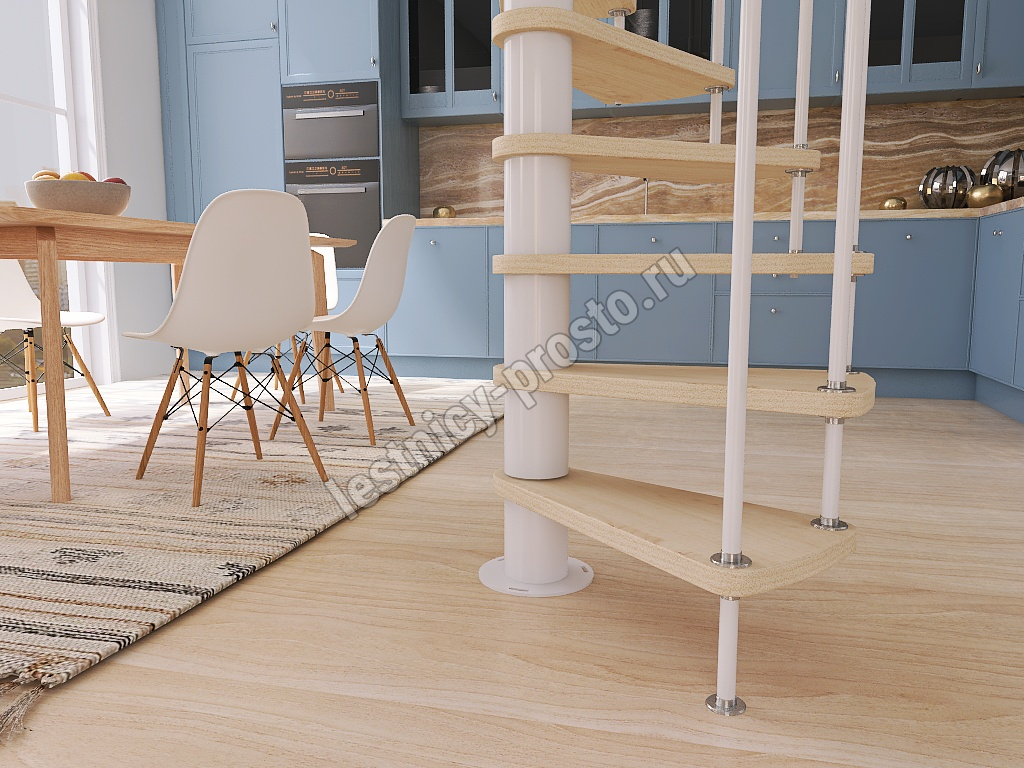 Винтовая лестница Prosto Spiral White D160см, h282.2-326,3 см, бук