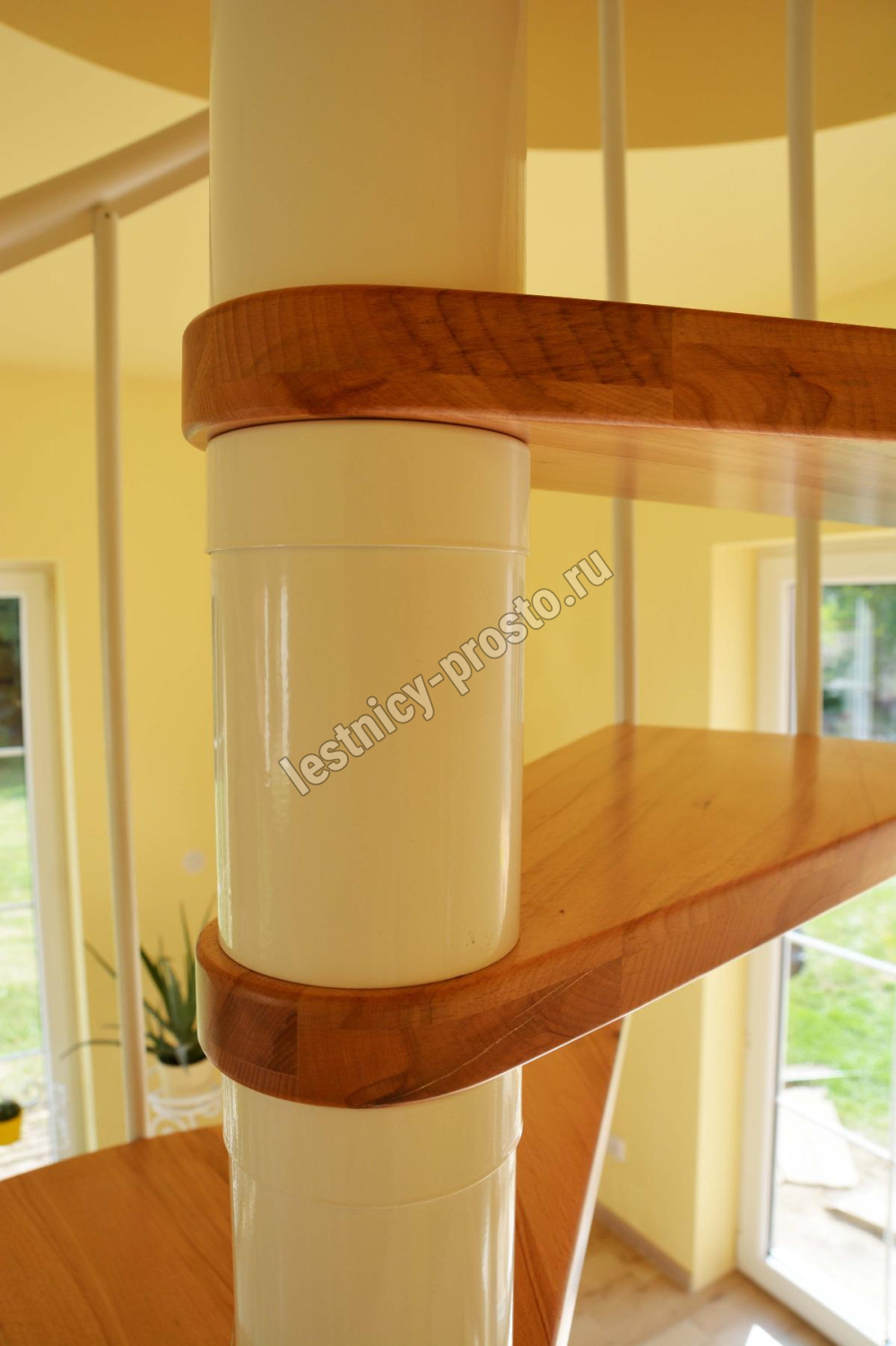 Ступени изготовлены из массива бука и покрыты износостойким защитным бесцветным лаком.
