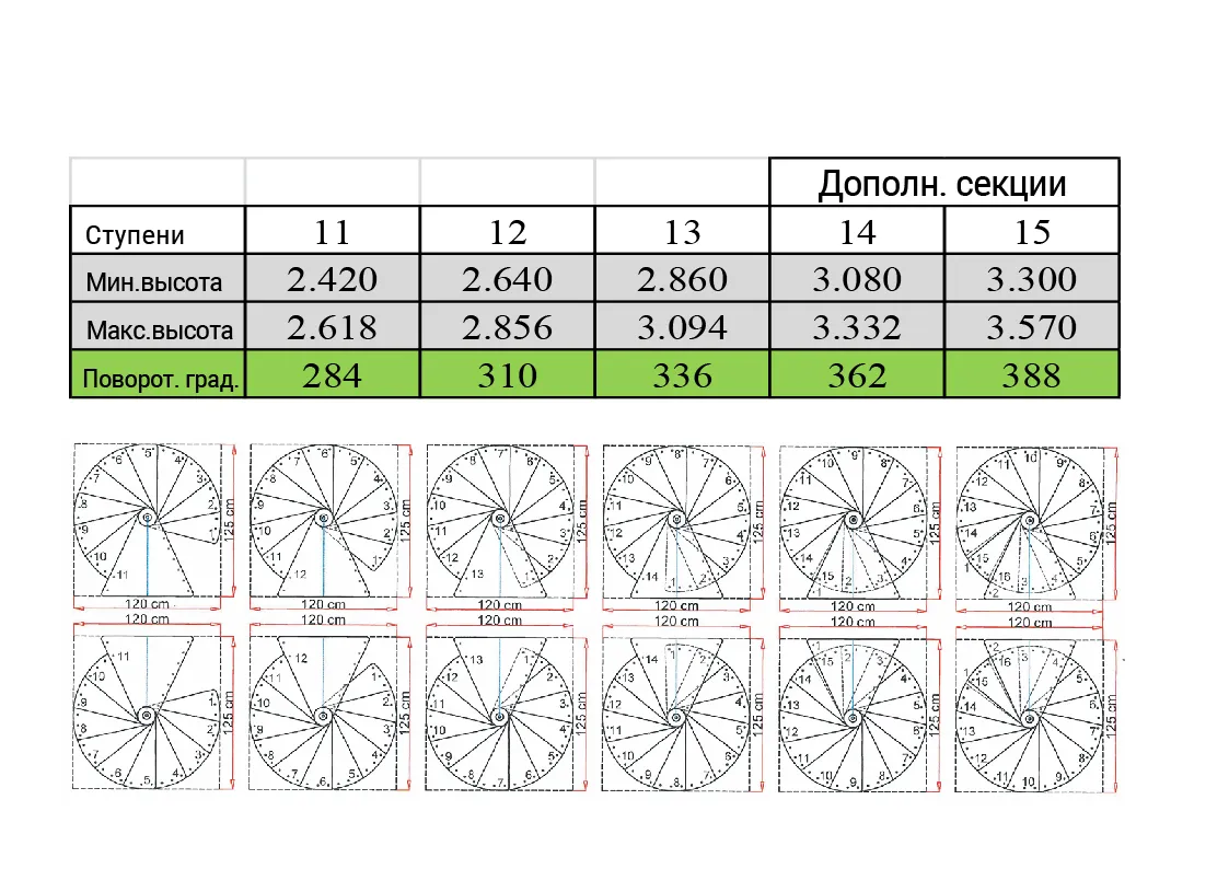 Высота лестницы 2860 - 3090 мм