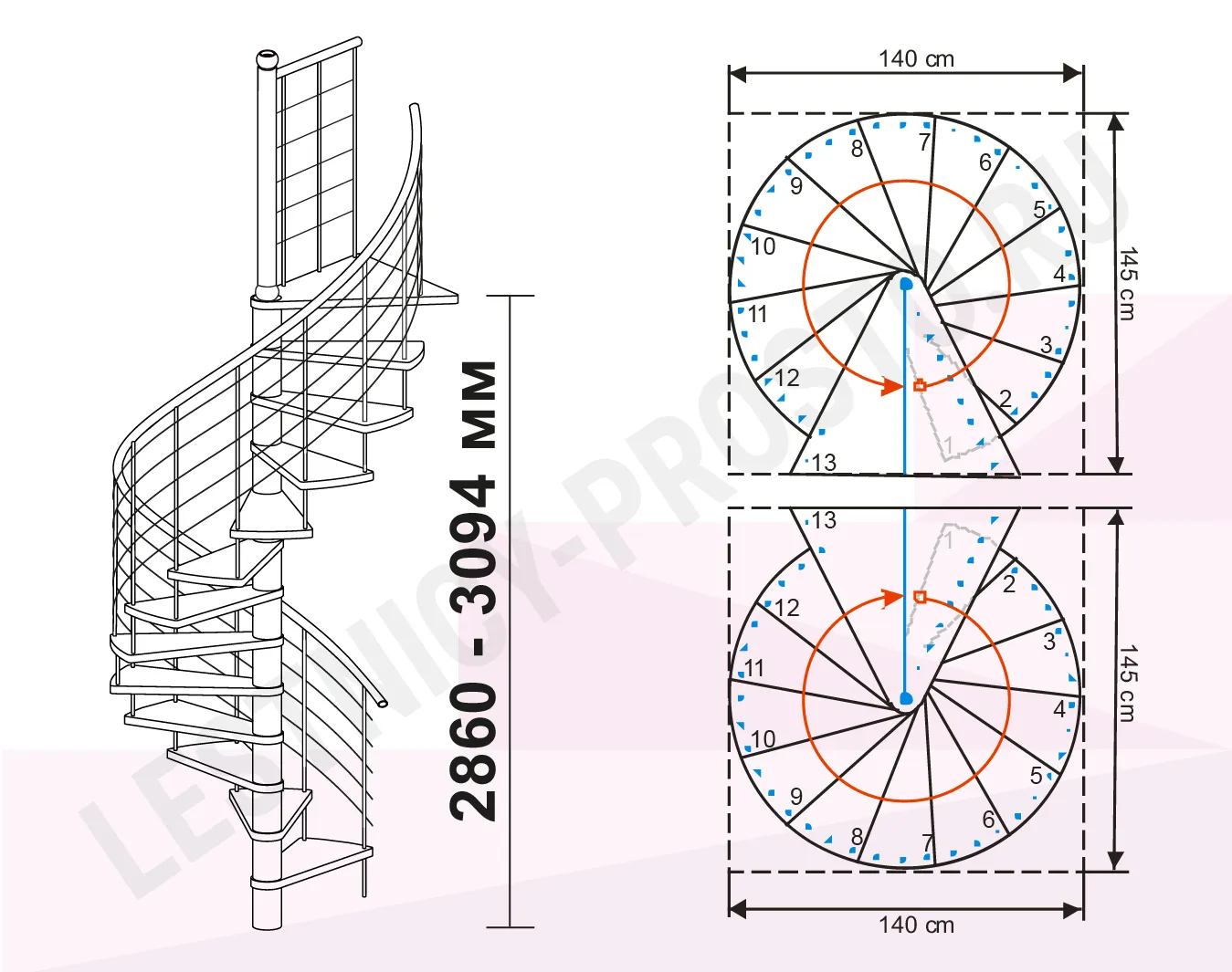 Высота лестницы 2860 - 3090 мм