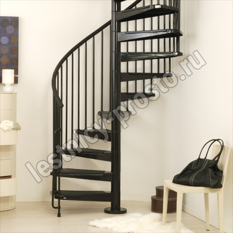 Отделка лестницы всегда в черном цвете. Перила из полиуретана с алюминиевым сердечником черного цвета, как и износостойкие нескользящие панели на ступенях.