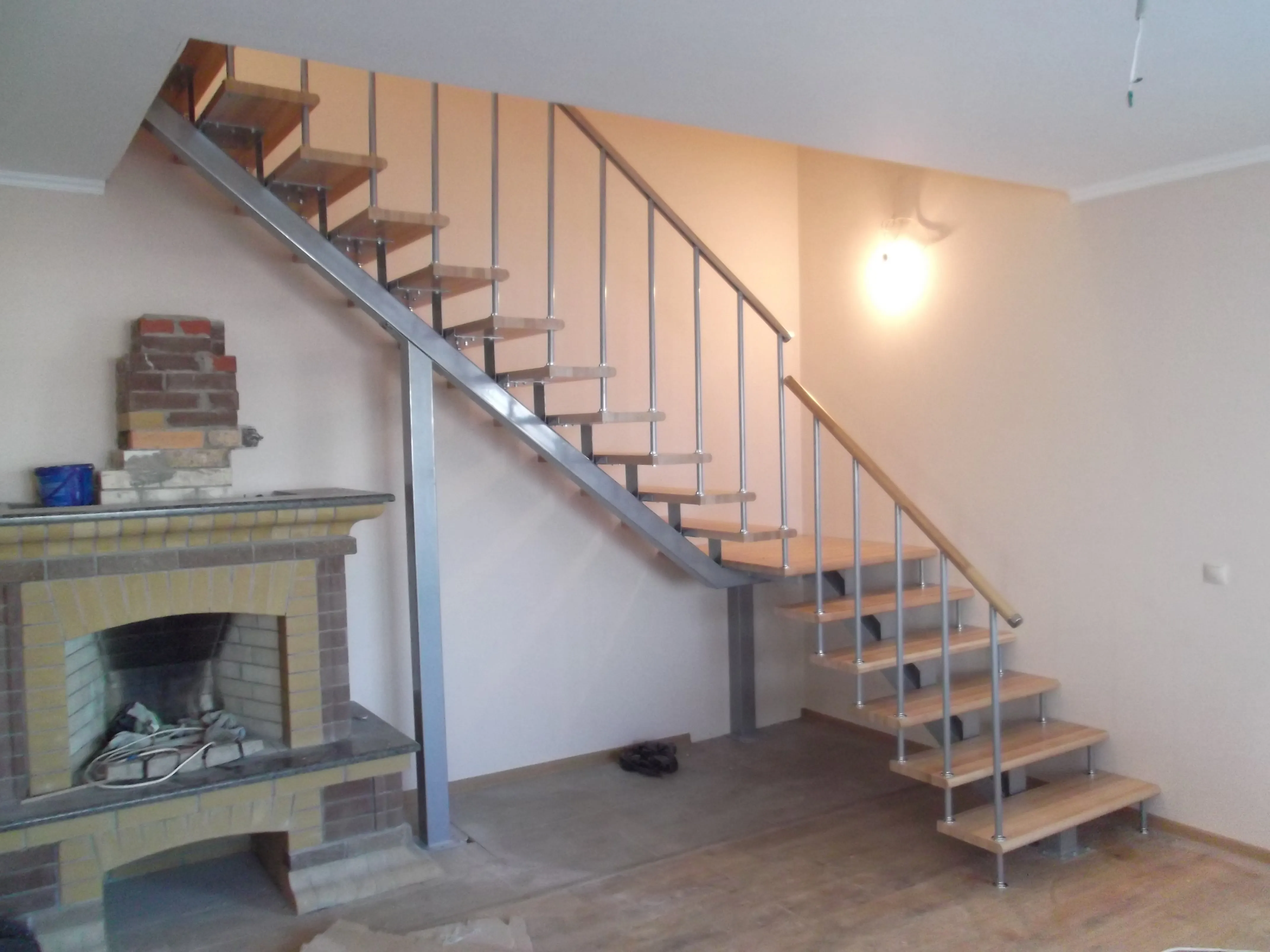 Лестница на центральном косоуре модель с единственным косоуром, который располагается по центральной оси марша и поддерживает ступени снизу.