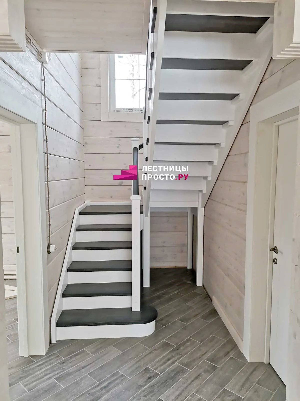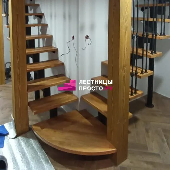 Лестница LP из сосны на второй этаж с поворотом на 180 градусов