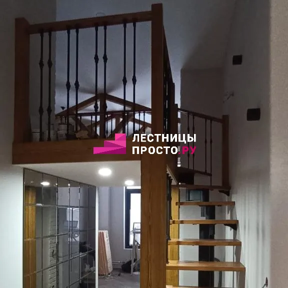 Металлическая лестница с дубовыми ступенями и ограждением LP-1-20